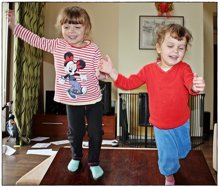Dzisiaj też się szczerzyłam, bo jak wiadomo ów gratisowy uśmiech pojawia się mimowolnie i niezapowiedzianie. Na przykład, gdy mama słyszy jak jej córki zaczynają knuć. Prawdopodobnie jestem nienormalna, ale uwielbiam jak moje dzieci kombinują coś razem. To miód na moje serce.