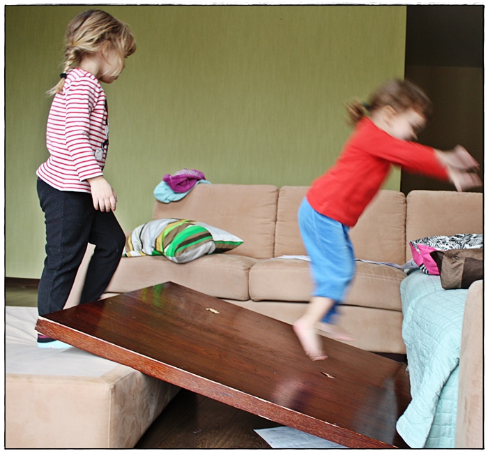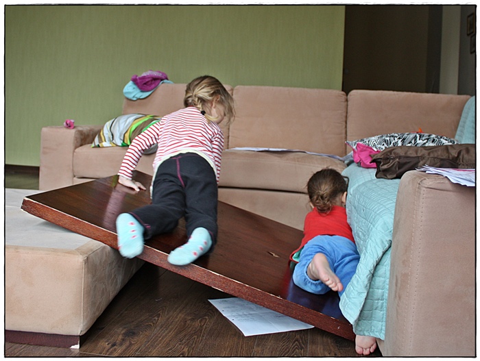 Zwykły, stary blat na 40 minut staje się zjeżdżalnią, która dziewczynom daje wspaniałą radość, a mamie najlepszą terapię.