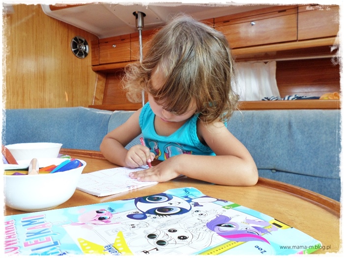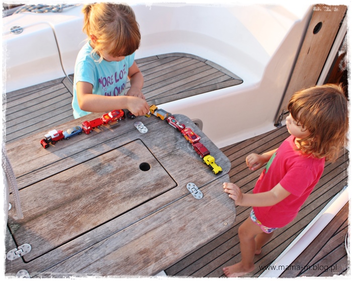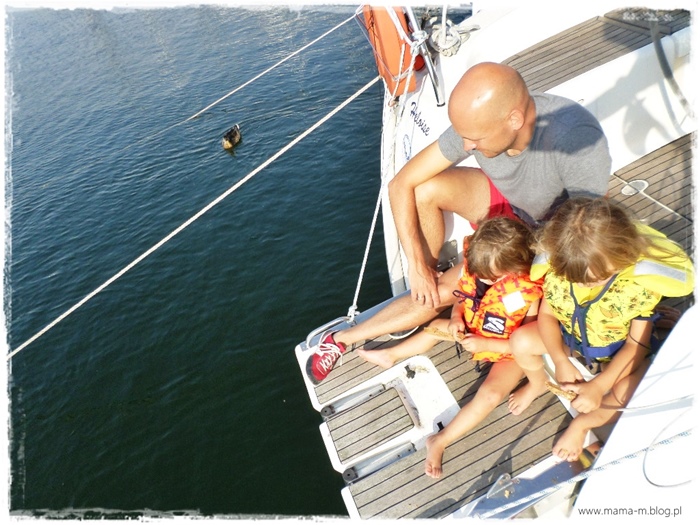 Ten tydzień był niesamowity. Uczucia jakie w rodzicach budzą szczęśliwe dzieci są trudne do opisania. Nawet teraz się uśmiecham, próbując opisać ten rejs. Dla naszych dzieci wszystko było nowe, ale też zadziwiająco naturalne. Nie pojawiały się pytania, a dlaczego, a kiedy, a po co? Zaakceptowały nową rzeczywistość z olbrzymią łatwością. Ot tak po prostu. Kąpiel na jachcie lub pod wspólnymi prysznicami w marinach, toaletę z pompką, spanie w kabinie, kamizelki ratunkowe, zasady panujące na jachcie, bark telewizora. Nie było problemów z tym, czego ja obawiałam się najbardziej, z życiem na małej przestrzeni, z nudą, brakiem zabawek, atrakcji. Okazało się , że kilka blaszanych samochodzików, kolorowanki i lekko rozkompletowana gra memo wystarczyły. Nie potrzebowały niczego więcej. Dwa odcinki kucyków na tablecie, oglądane na przemian jako dobranocka nie stanowiły dla nich większego problemu. Mieliśmy tydzień tylko dla siebie. Cali my dla dzieci, bez komputerów, telefonów, pracy i zbędnych obowiązków. Nasza uwaga została doceniona i zamieniona w uśmiechnięte buzie dziewczyn. Ich ogromny optymizm był dla nas zastrzykiem energii. Takie rodzinne perpetuum mobile 🙂