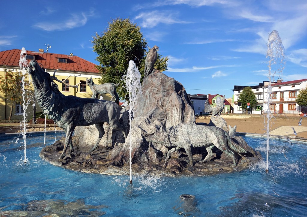 Poszukując obiadu, trafiliśmy do Józefowa, gdzie zostaliśmy oczarowani cudowną i tak bliską mojemu sercu fontanną oraz wegańską kuchnią w restauracji Knieja. Burgery z buraka – mistrzostwo!