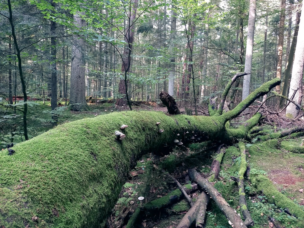 Odcienie zieleni i rzeka Jeleń, wzdłuż której biegnie trasa, sprawiły, że zatrzymywaliśmy się co chwilę, by zachwycać się tym, co widzimy. Dopełnieniem był zapach lasu połączony z bogactwem roślin. Gdy nad głowami zobaczyliśmy żurawie rozmawiające o trasie przelotu i formujące się w klucz, zgodnie uznaliśmy, że jest tu rewelacyjnie. W dolinach Jelenia i Tanwi stwierdzono obecność 40 zespołów roślinnych. Drzewa osiągają tu wysokość do 40 metrów, a ich średnice mogą mieć do 50 cm. Serio, czysta magia. W rzece Jeleń żyje pstrąg potokowy i lipień. W lasach roztoczańskich mieszkają wilki, rysie, jelenie, łosie, wydry, lisy, bobry, sarny, daniele i dziki. Spotkać możemy rzadkiego dzięcioła białogrzbietego i zielonosiwego, a także puszczyka uralskiego, orlika krzykliwego. To miejsce, gdzie żyją żółwie błotne i gniewosze plamiste oraz wiele, wiele innych niezwykłych i wyjątkowych stworzeń.