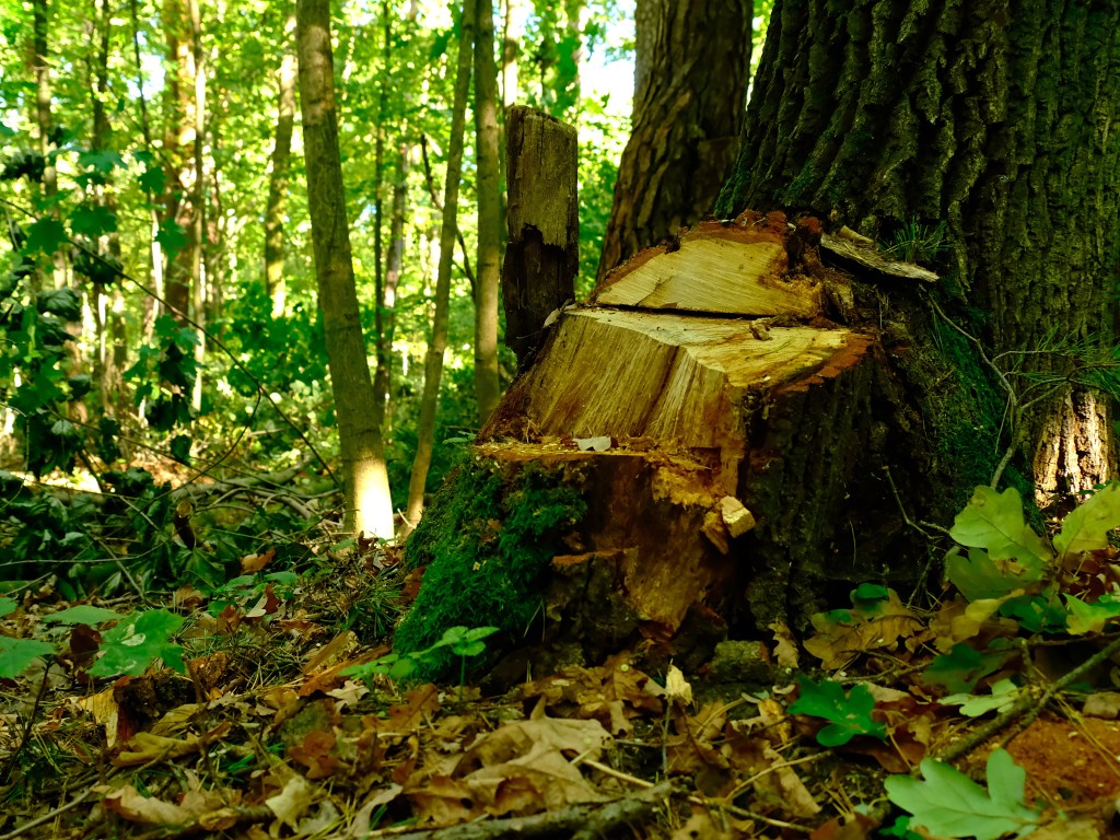 – Jakim byłbym gospodarzem, gdybym nie dbał o swoją uprawę… marchewki też się przerywa. Zgadza się Pani ze mną, prawda? I tak nie tniemy wszystkiego, w tym lesie już większość przekroczyła swój wiek i jest do pozyskania. Teraz to taka kosmetyka, za kilka lat, to dopiero tu się będzie działo. Las trzeba odmładzać. O, widzi Pani ten dąb, on już jest do wycięcia, z niego już nic nie będzie… Tonem pełnym pewności z nutką arogancji przekonuje mnie do swoich racji starszy leśnik, który chwilę wcześniej, w mało przyjemny sposób, zapytał w jakim celu robię zdjęcia.