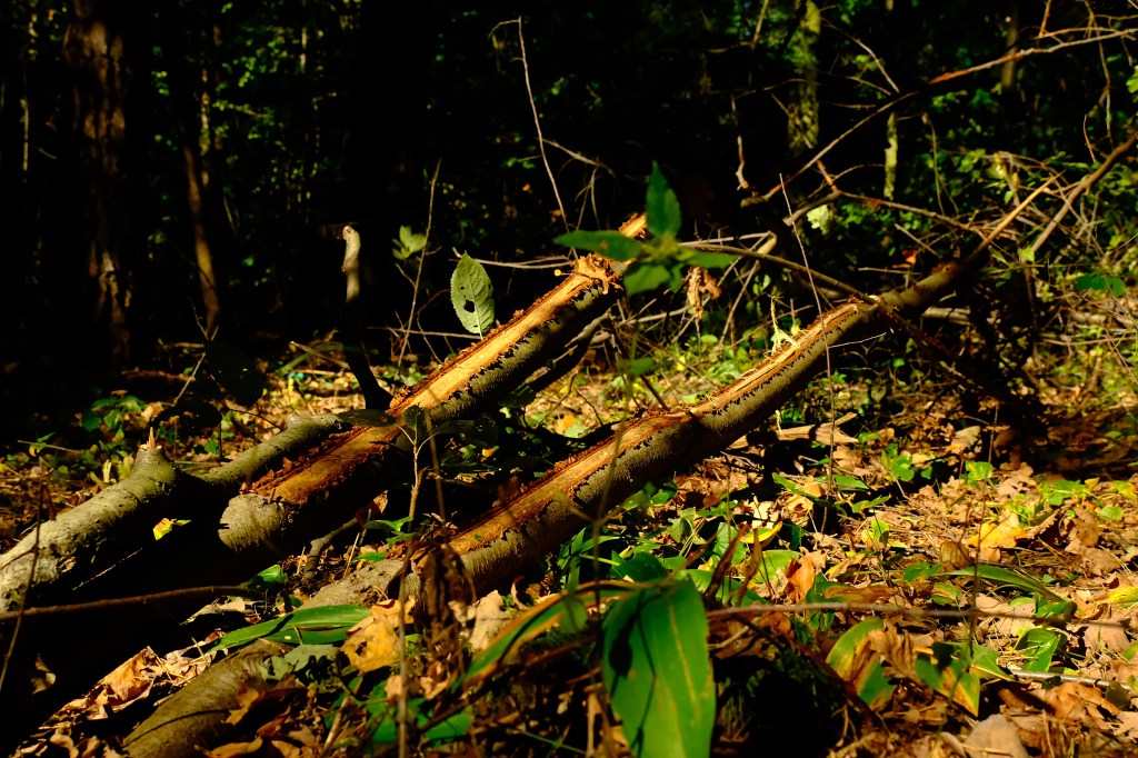 Wchodzę do mojego lasu z aparatem. Ostatni raz robię zdjęcia drzewom, które odwiedzałam niemal każdego dnia przez ostatnich 12 lat. Czuję ich ból, strach, niedowierzanie. Poranione, pocięte, pozyskane. Widzę ich połamane gałęzie, usychające liście. Pytam leśnika, co stanie się z ogromnym bałaganem, który zrobili, co zrobią ze zdewastowanym lasem, po tym jak zabiorą to, po co przyszli. Odpowiada mi, że to biomasa i że za półtora roku nie będzie po niej śladu. Leśnicy w końcu odjadą, dzwięk pił umilknie. Zostawią las z otwartą raną, las wołający bezgłośnie o pomoc.